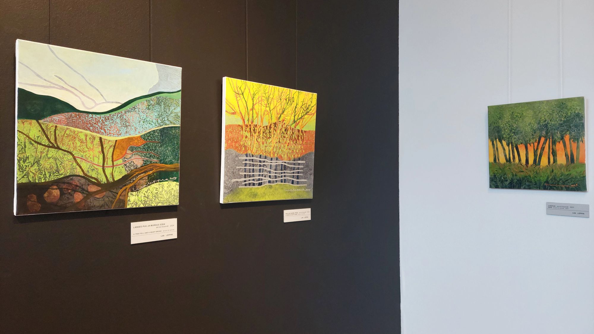 Näitusel eksponeeritud maalidega annan edasi loodusest inspireeritud tundekogemusi. Töödes olen keskendunud emotsiooni olemusele, luues eluhetkedest tajuruume ja abstraktsioone. Loodust kui näituse peateemat võib võtta ka metafoorina. Värvidest pakatavates teostes stiliseerin loodust läbi arhitektuursete vormide prisma. Rahulikud pinnad vahelduvad jõuliste või peenekoelistega, rikkalikud motiivid minimalistlikega. Maalipindade omapärane kihilisus ja läbipaistvus pakub nii tehnilises kui mõttelises plaanis süvenemis- ning avastamisrõõmu.
